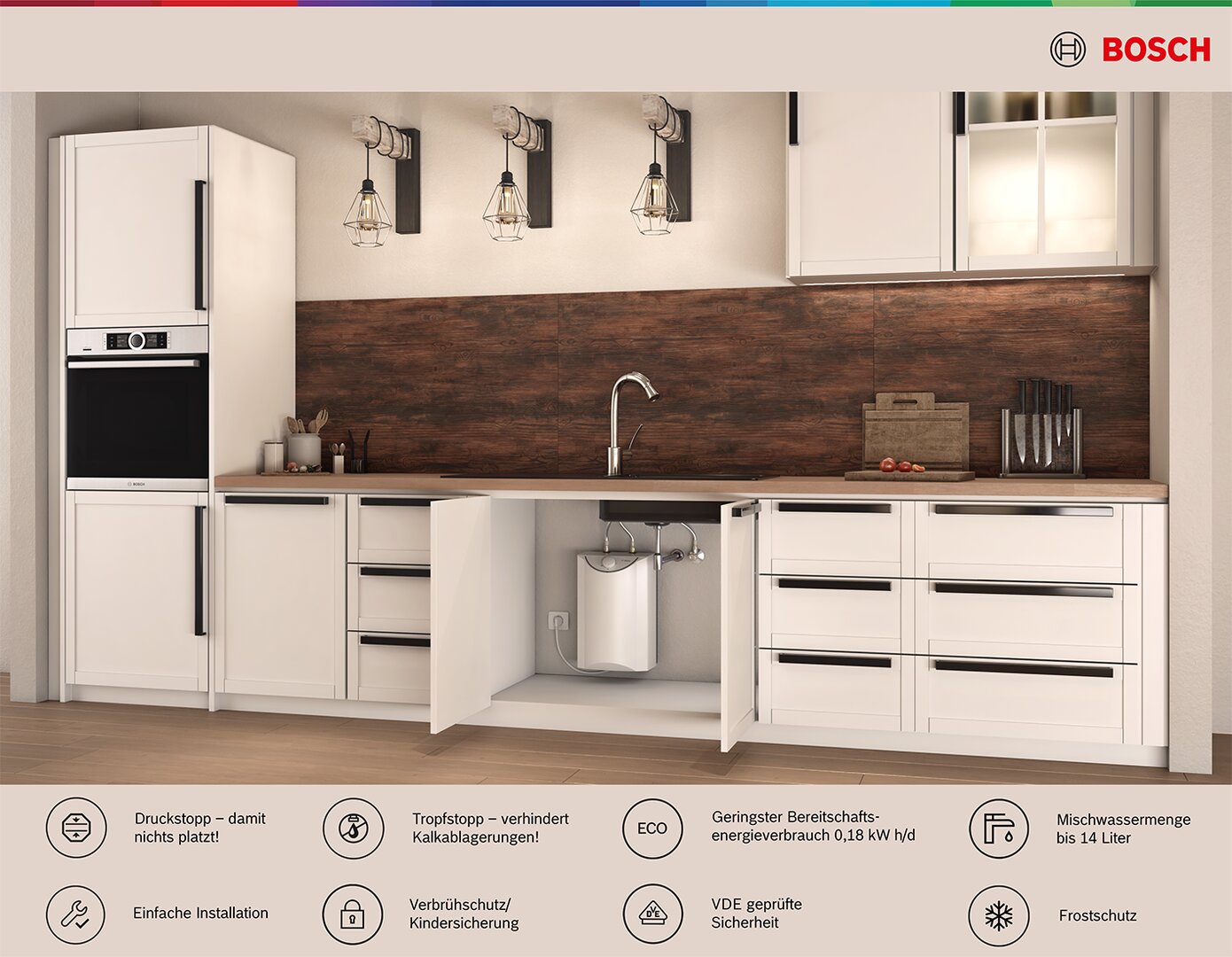 Aucune goutte ne s’écoule de la tête de la robinetterie lors de la chauffe, pas de gaspillage d’eau et réduit l'entartrage. L'arrêt de pression indique l'entartrage et reconnaît le raccordement erroné de l'eau à partir de 0,25 MPa (2,5 bars).