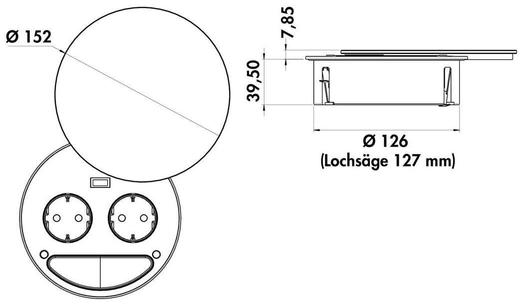 — profondeur d’encastrement env. 40 mm