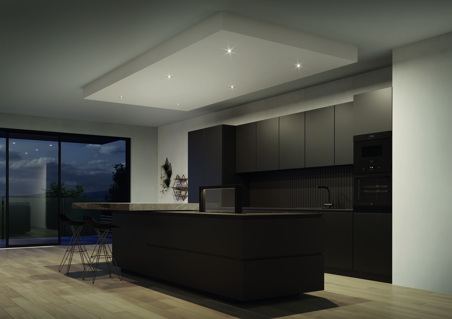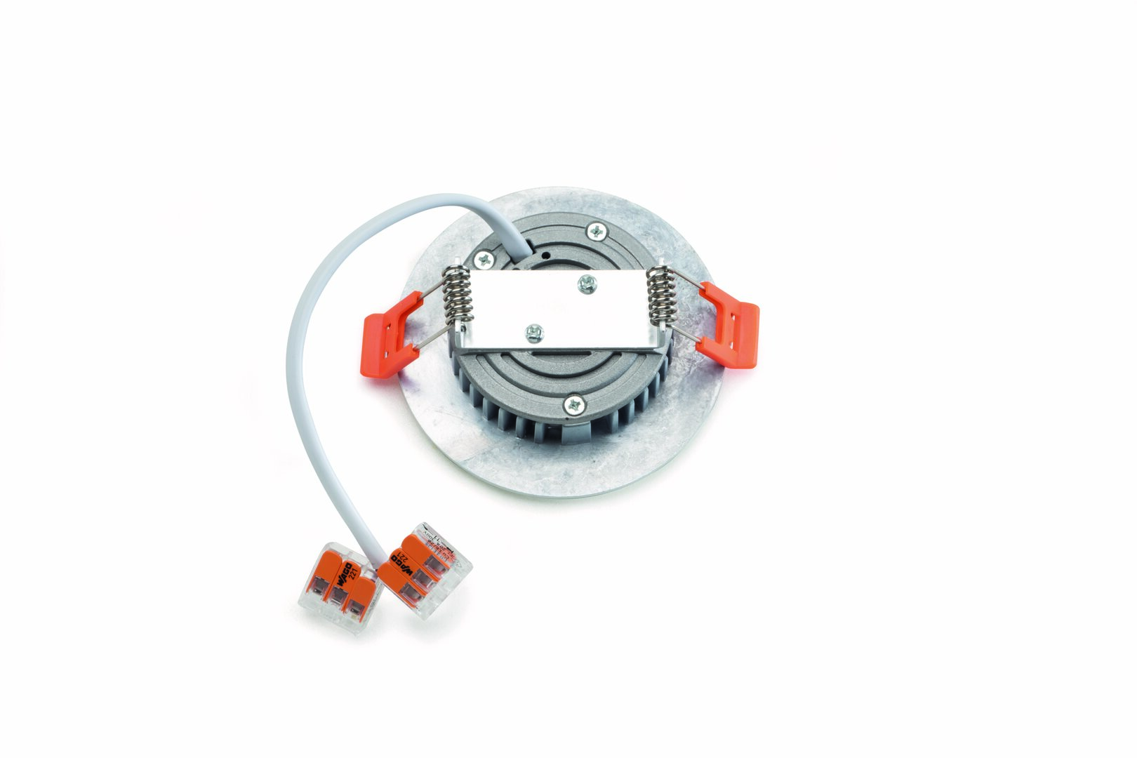 Le spot encastré LUMICA® EXO LED, dont le corps est en aluminium moulé sous pression, se distingue par son design moderne et ses nombreuses possibilités de combinaison. L'optique à faisceau central est un signe distinctif particulier. D'un blanc neutre, il s'intègre harmonieusement dans différents concepts de cuisine au sein de la salle à manger. Grâce à la technologie COB innovante avec des LED très proches les unes des autres, le plafonnier assure un haut niveau de luminosité avec jusqu'à 105 lumens/watt. La couleur de la lumière, 3000 kelvins, correspond à un ton blanc chaud. Des clips à ressort permettent d'installer facilement le luminaire à LED dans les plafonds creux. La profondeur d'encastrement est de 34 mm, le diamètre de perçage est de Ø 65 à 78 mm. Le kit comprend un câble d'alimentation secondaire de 150 mm et un câble d'alimentation de 2.000 mm. Le raccordement s'effectue via le convertisseur LED 2430 disponible séparément. L'interrupteur Call-Me disponible permet en outre de faire varier la luminosité en continu.