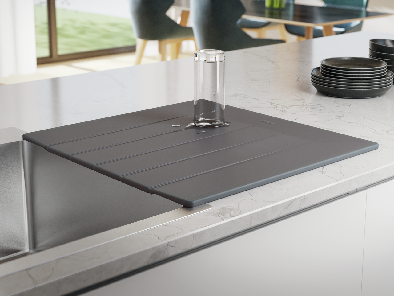 Tapis d'égouttage en silicone. Convient pour les éviers à encastrer par le bas et à montage affleurant.
