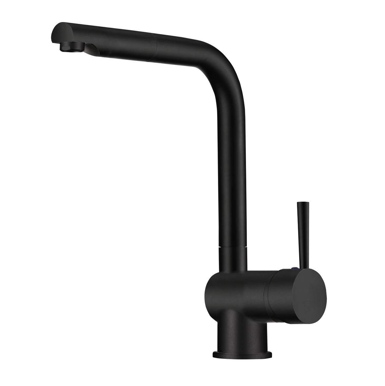 Mitigeur à bec unique. À tête pivotante/extractible, manette latérale et cartouche céramique.