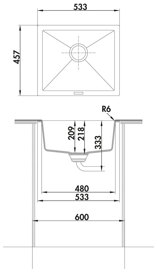 - Bac à encastrer par le bas