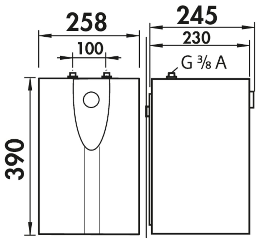— dimensions de l'appareil (H x L x P) 390 x 258 x 245 mm