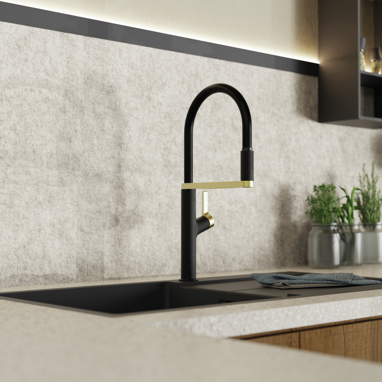 Wasserwerk Aria, noir-or brossé, haute pression