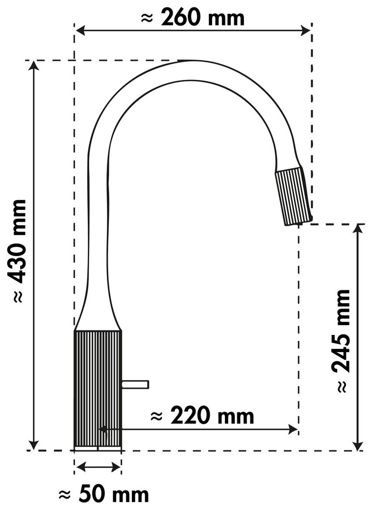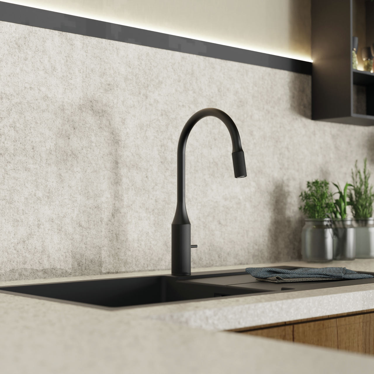 Le mitigeur d'évier Wasserwerk Grace allie un design minimaliste à une grande fonctionnalité. Le mitigeur monocommande dispose d'un bec pivotant à 360°, est facile à utiliser grâce à un levier latéral et est équipé d'une cartouche céramique durable. Le diamètre de perçage est de 34 à 38 mm. Avec une saillie de 220 mm et une hauteur de montage de 430 mm, ce robinet est idéal pour les cuisines modernes.