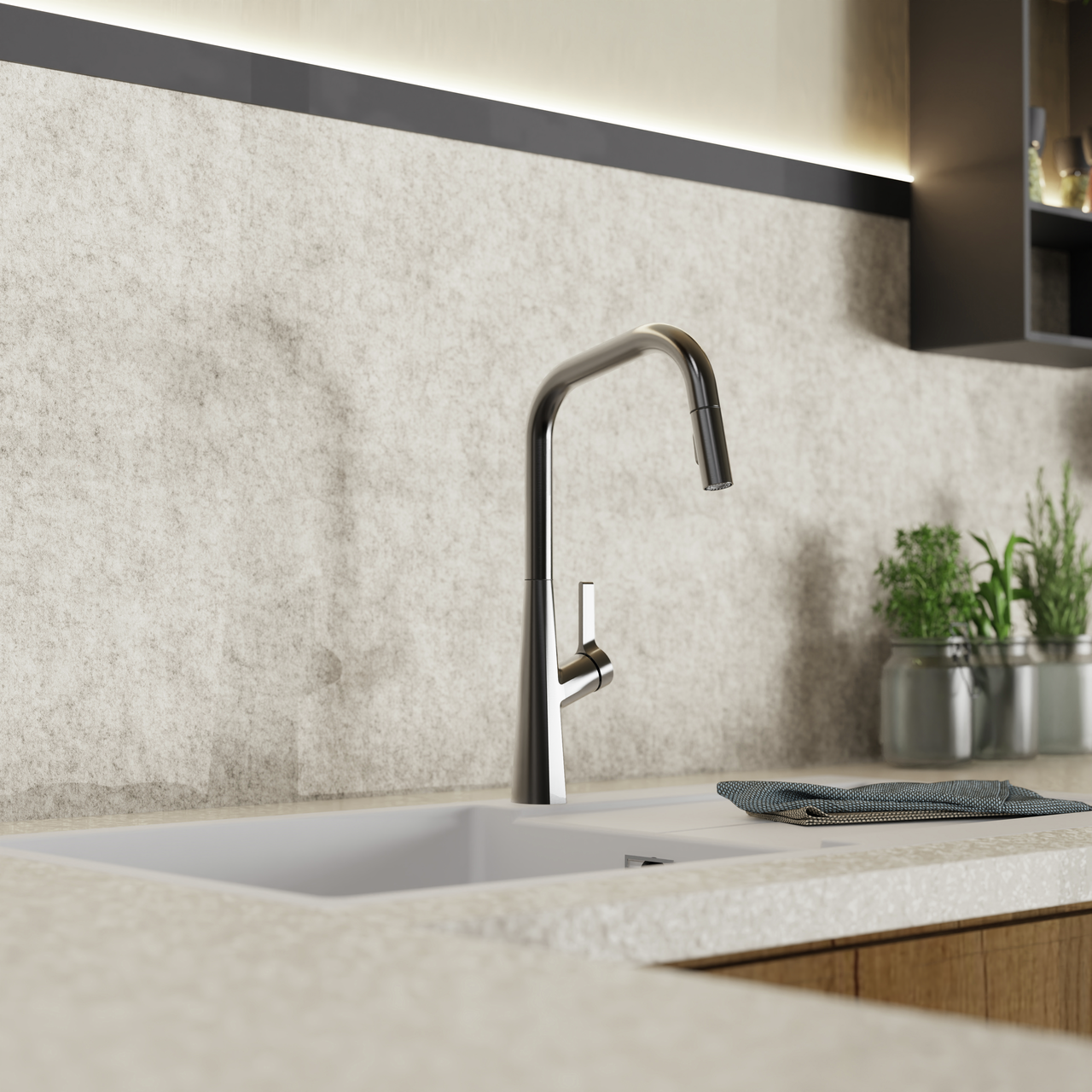 Le robinet d'évier Kristea est un mitigeur haut de gamme qui allie fonctionnalité et design moderne. Avec son bec pivotant et extractible, il offre une flexibilité maximale pour travailler dans la cuisine, par exemple pour remplir de grandes casseroles ou nettoyer l'évier. La technologie de démarrage à froid, économe en énergie, assure une utilisation durable, tandis que la zone de pivotement de 360° permet une manipulation confortable. Sa finition durable et son design intemporel en font le complément parfait des cuisines au style affirmé. De plus, elle est facile à monter et convainc par son utilisation intuitive. Un choix idéal pour tous ceux qui apprécient l'esthétique et la fonctionnalité.