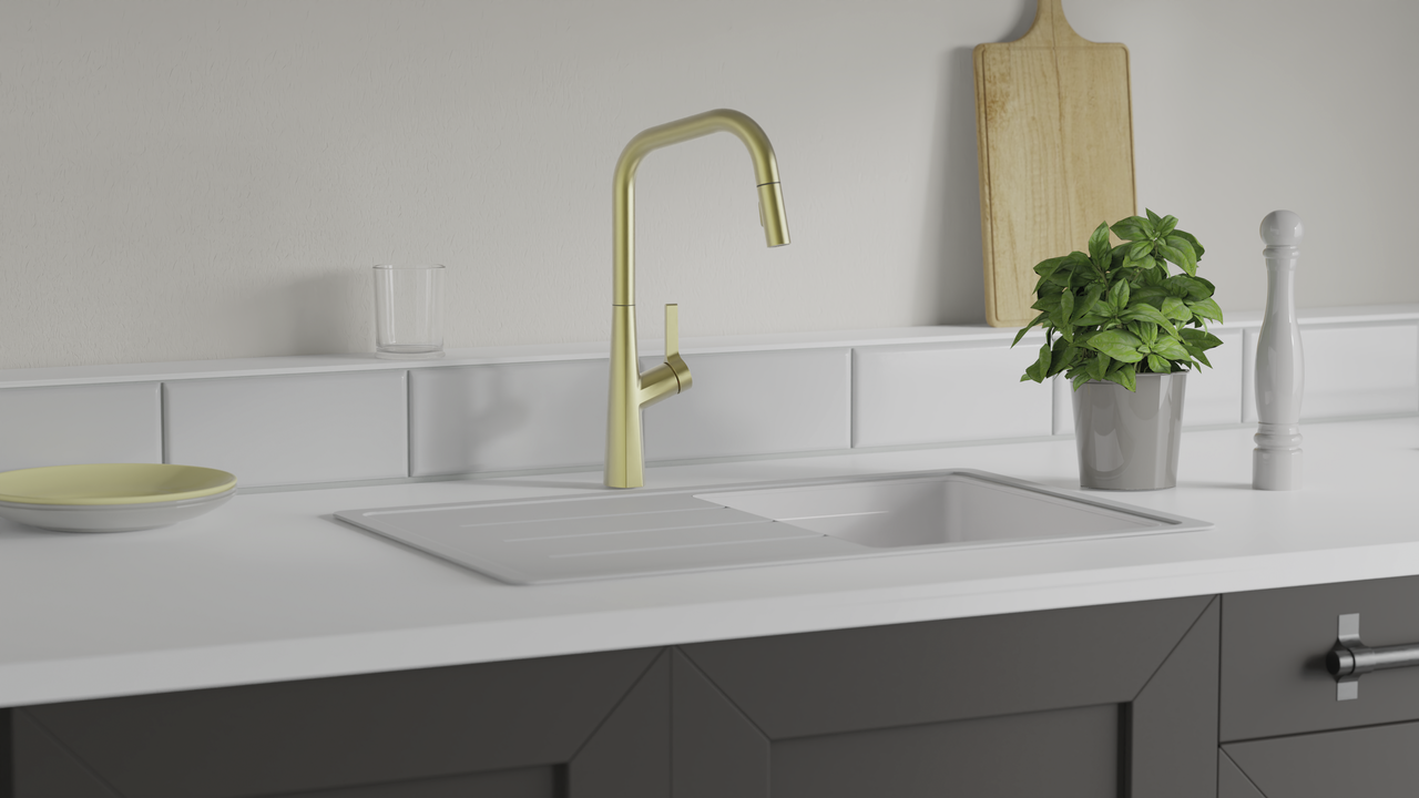 Le robinet d'évier Kristea est un mitigeur haut de gamme qui allie fonctionnalité et design moderne. Avec son bec pivotant et extractible, il offre une flexibilité maximale pour travailler dans la cuisine, par exemple pour remplir de grandes casseroles ou nettoyer l'évier. La technologie de démarrage à froid, économe en énergie, assure une utilisation durable, tandis que la zone de pivotement de 360° permet une manipulation confortable. Sa finition durable et son design intemporel en font le complément parfait des cuisines au style affirmé. De plus, elle est facile à monter et convainc par son utilisation intuitive. Un choix idéal pour tous ceux qui apprécient l'esthétique et la fonctionnalité.
