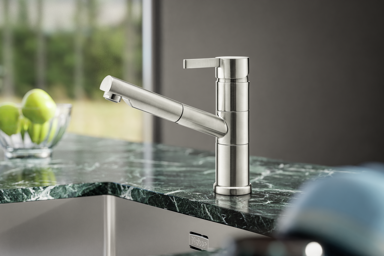 Fabriqués de main de maître, les nouveaux robinets de cuisine ARMATE® SERVIZIO de Naber répondent aux plus hautes exigences. Nouveau chez Naber : des robinets en acier inoxydable au design recherché et d'une grande précision. Les robinets Namor® sont fabriqués en acier inoxydable d'excellente qualité et ont une durée de vie particulièrement longue.