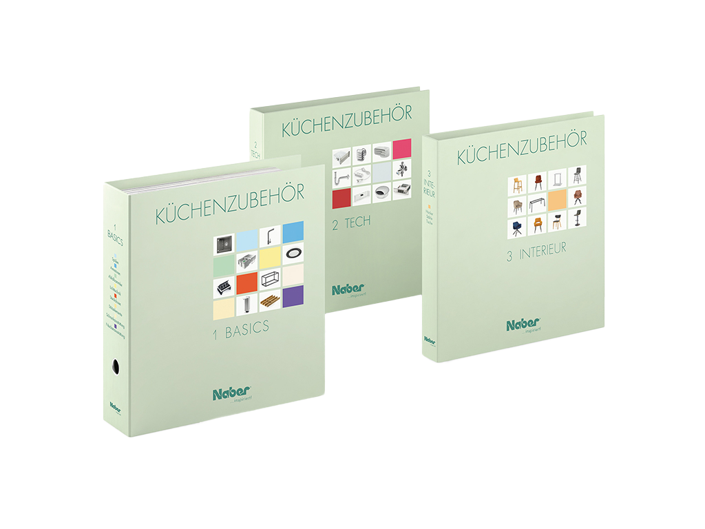 Le catalogue de produits « Le Gros Vert », apprécié depuis longtemps comme référence dans toute la branche, est divisé en trois parties : BASICS, TECH et INTERIEUR pour une utilisation plus facile. Désormais, un lot de trois catalogues inspirants présente les accessoires et les solutions d'aménagement innovants proposés par Naber !