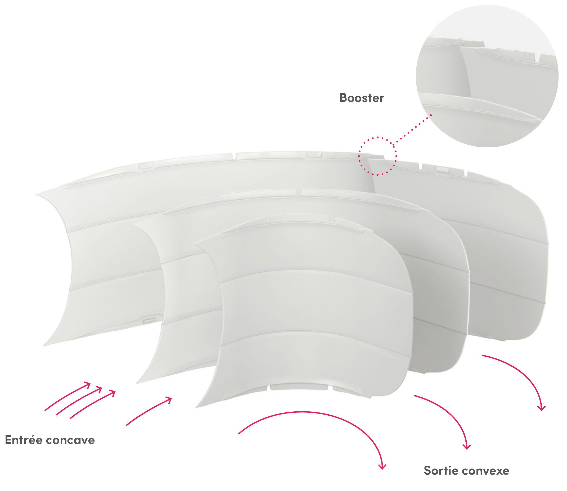 Plus de détailsDéflecteur à 90°. Technologie d'écoulement perfectionnée, avec des déflecteurs d'air optimisés.