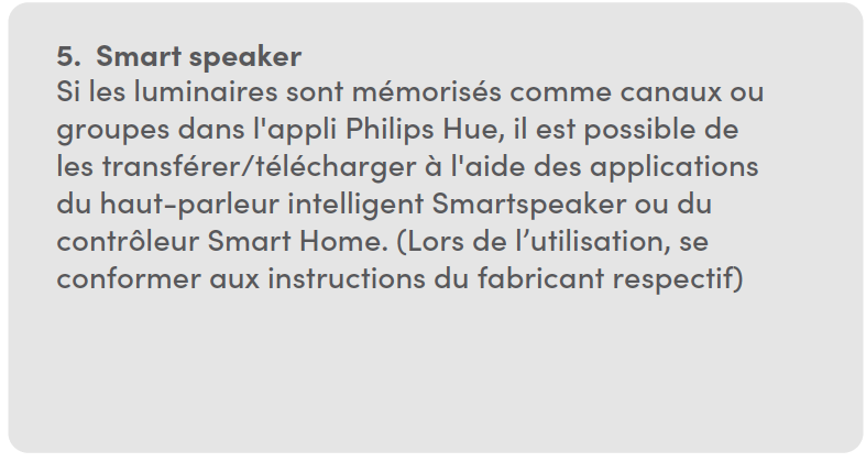 Quand il est connecté à un système Smart Home existant, le Philips Hue Bridge doit être enregistré via l'application du système Smart Home.