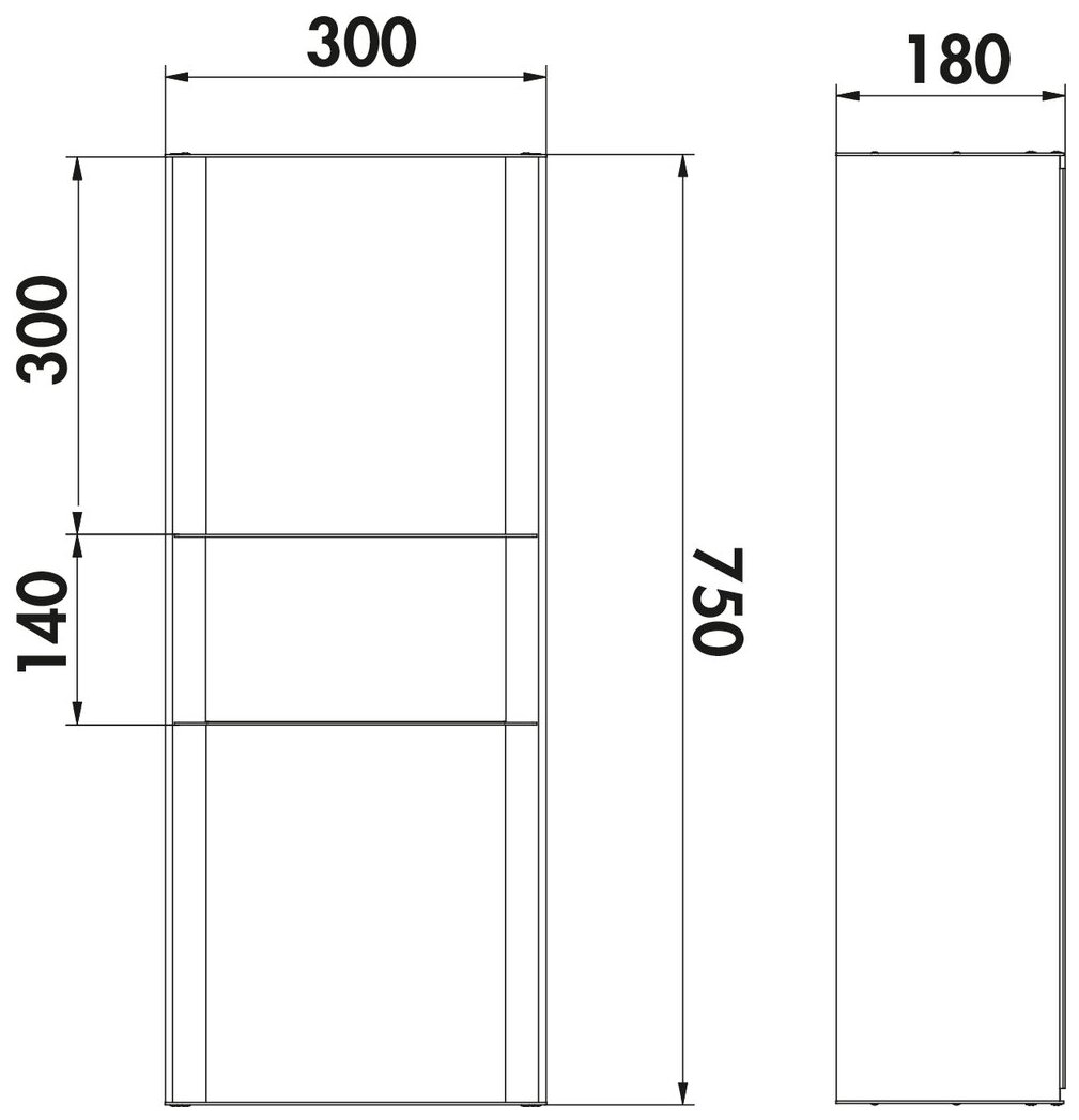 transFORM étagère individuelle, 750 x 300 x 180 mm (H x L x P)
