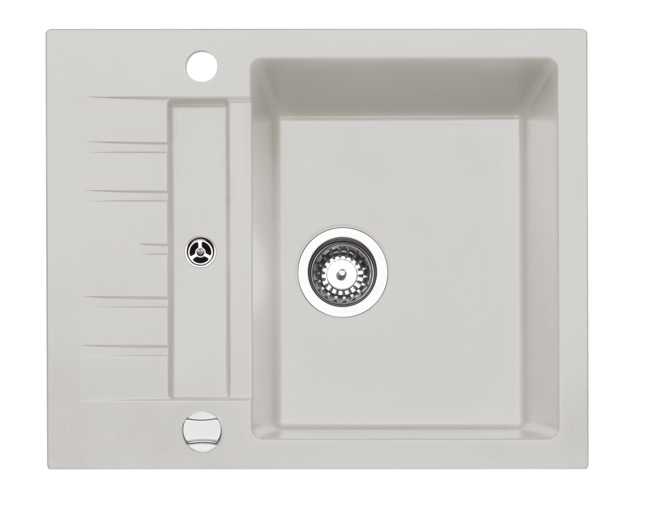 De Corto 615 composiet inzetbak combineert eenvoudige esthetiek met een hoge mate van functionaliteit. Het uiterlijk wordt resoluut gekenmerkt door de elegante en veelzijdige granietlook. Daarbij komen rechtlijnige contouren die opvallen wanneer ze in het keukenblok worden geïntegreerd. De spoelbak is voorzien van een klein, licht gebogen en geribbeld afdruipvlak. Het wordt gebruikt om bestek en ander keukengerei op te plaatsen, waarbij het druipwater rechtstreeks in de afvoerbak stroomt. De hoofdbak is voorzien van een zeefkorfkraan die wordt bediend via de verchroomde excentrische fitting. De inbouwspoelbak is gemaakt van bestendig composietmateriaal volgens de laatste technologie. Door het hoge aandeel kwartssteen zijn de oppervlakken uiterst krasvast, vlekbestendig en gemakkelijk te reinigen. Dankzij de materiaaleigenschappen is hij geschikt voor gebruik in combinatie met een warmwaterset tot 100 °C. De spoelbak is ook verkrijgbaar in een set met een hogedrukfitting die past bij het kleurenpalet. Meer flexibiliteit wordt geboden door gaten aan beide zijden. Zij maken het mogelijk de enkele spoelbak te installeren met een wastafel links of rechts uitgelijnd.