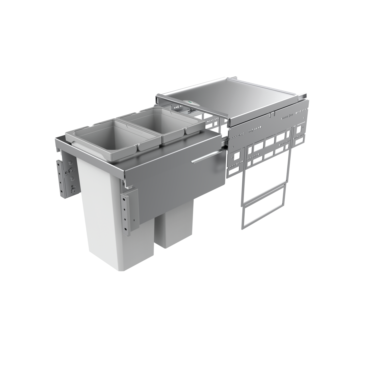 Het Cox® Base 460 S/400-2 afvalscheidingssysteem biedt de ideale oplossing voor keukenkastjes met pannenlades. Het inspireert met een hoog bedieningsgemak en maakt eenvoudig in- en uittrekken mogelijk. Het afvalscheidingssysteem bevat twee afvalbakken met elk een volume van 12,5 liter, waarmee recyclebare materialen, zoals restafval en organisch afval, afzonderlijk kunnen worden gescheiden. Het uittrekbare deksel houdt geurtjes buiten en dient ook als extra opslagruimte. Voor volledige en gemakkelijke toegang is de ingebouwde afvalbak uitgerust met een volledig uittrekbare uittreklade. Het zachte uittrekmechanisme en de geïntegreerde aanslagdemping zorgen voor een soepele en stille terugtrekking. Met het quick&easy montageframe kan de afvalemmer precies en eenvoudig aan de wand van de kast worden bevestigd.