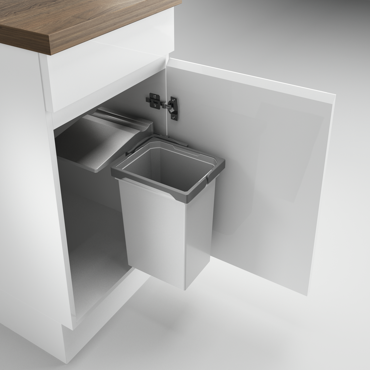 De Cox® Beep 400 draaibare afvalemmer overtuigt door zijn compacte afmetingen, waardoor hij ook in kleine keukenkastjes kan worden geplaatst. Hij maakt gebruik van een slimme draaitechnologie en kan worden geïnstalleerd in draaideurkasten met een corpusbreedte van minimaal 40 cm. De afvalemmer heeft een afvalvolume van 10 liter. Hij kan worden verwijderd van de ophanging en gemakkelijk worden getransporteerd via de inklapbare handgrepen. De afvalbak wordt afgesloten met een deksel van duurzaam en onderhoudsvriendelijk kunststof. Het blijft in de kast staan zodat de afvalemmer open is als de kastdeur wordt opengetrokken. Afhankelijk van het deurscharnier kan het afvalsysteem rechts of links worden gebruikt. Voor een eenvoudige installatie wordt het aan de vloer of de achterwand van de kast bevestigd. De drager wordt aan de binnenkant van de deur bevestigd. Dit is geschikt voor zowel frame- als paneeldeuren.