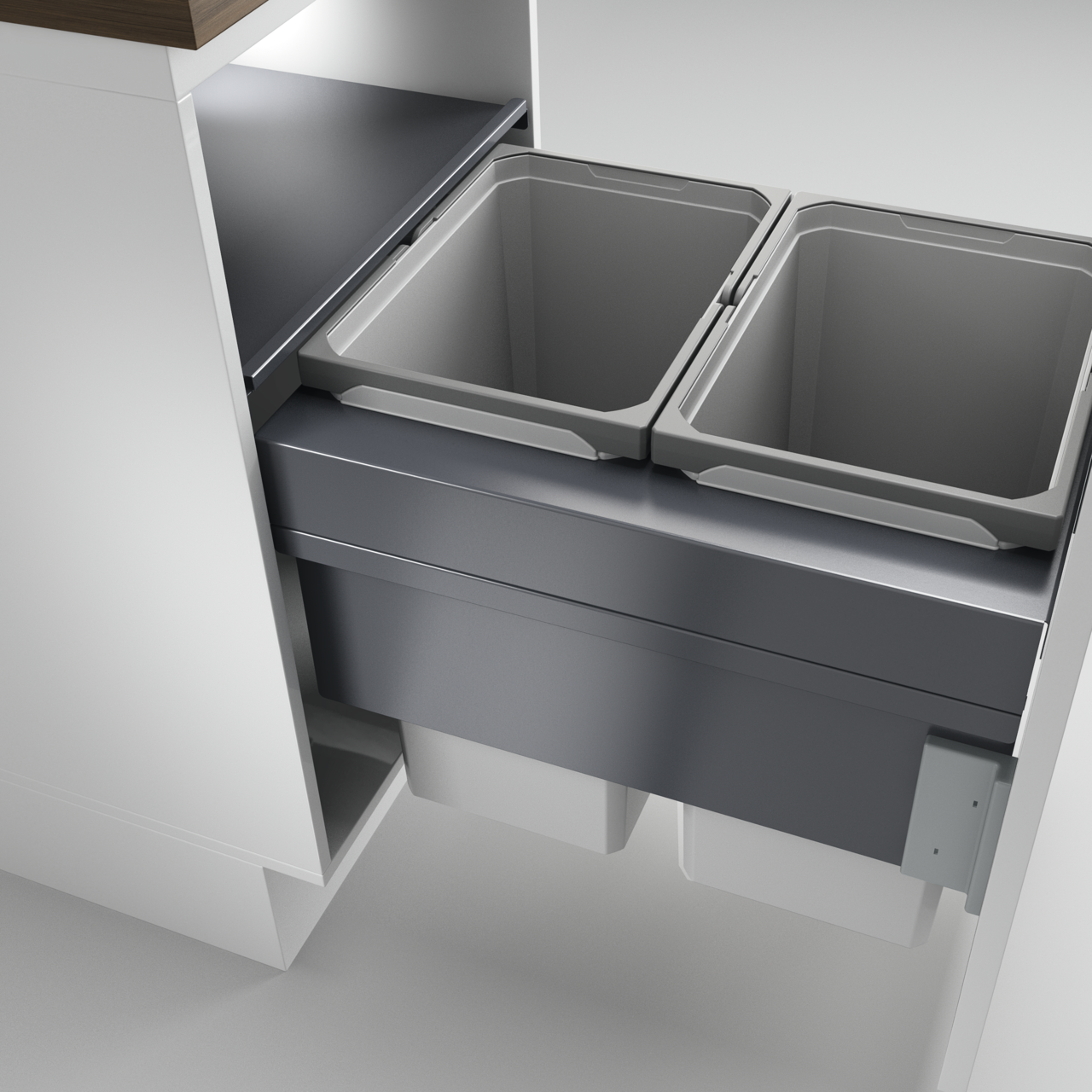 Het combineert functionaliteit met een royaal afvalvolume: het afvalscheidingssysteem Cox Clan® 490/500-2 als overbouwversie. De afvalbakken in de set hebben elk een inhoud van 29,5 liter. Ze kunnen in één eenvoudige stap worden verwijderd om te worden geleegd en gereinigd. Om te voorkomen dat er geurtjes in de keuken ontstaan, worden ze in gesloten toestand afgedekt door een algemeen deksel. Het is gemaakt van gecoat plaatstaal en kan worden gebruikt als extra plank voor schoonmaakspullen en afvalzakrollen. De volledig uittrekbare lade maakt volledige toegang mogelijk. Het is uitgerust met een soft pull-out en een soft-close mechanisme. Met behulp van het quick&easy-montageframe wordt het afvalscheidingssysteem nauwkeurig bevestigd aan de wand van de kast en ook aan het frontpaneel. Binnen de serie zijn versies in verschillende maten verkrijgbaar.