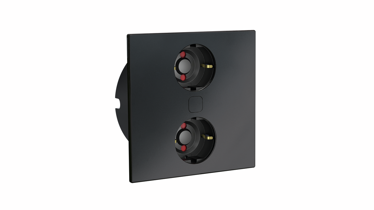 Duplex E dubbele contactdoos, hoekig, met veiligheidsstopcontacten, zwart mat