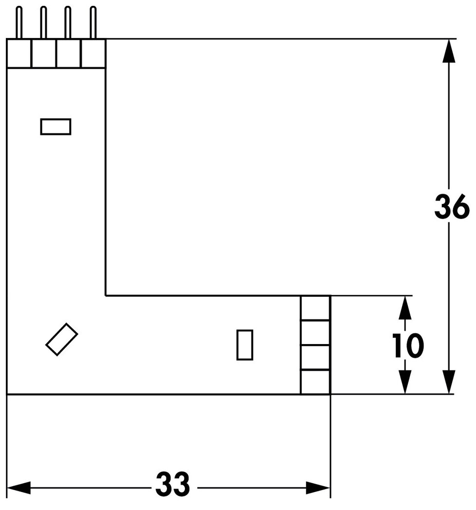 — stekkersysteem 4-polig, 1 x stiftstrip opgestoken, bussenstrook aan weerszijden