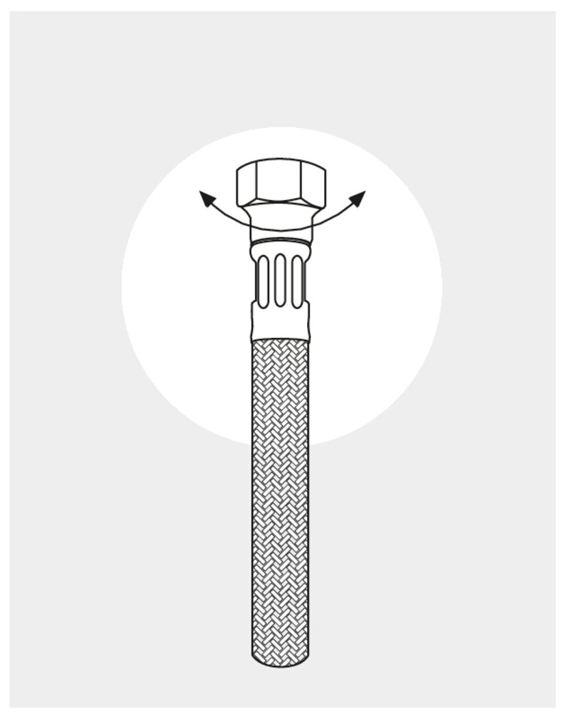 De flexibele roestvrijstalen slang met 3/8" wartelmoer wordt gekenmerkt door robuuste en tegelijkertijd flexibele eigenschappen dankzij de roestvrijstalen coating. De wartelmoer kan worden gedraaid zodat de slang torsievrij blijft. De knelfitting die aan het andere uiteinde is geïntegreerd, is geschikt voor aansluiting op andere flexibele slangen en koperen leidingen. De slang, die verkrijgbaar is in verschillende lengtes, is getest en gecertificeerd volgens W 270 + KTW-A en is geschikt voor drinkwater.