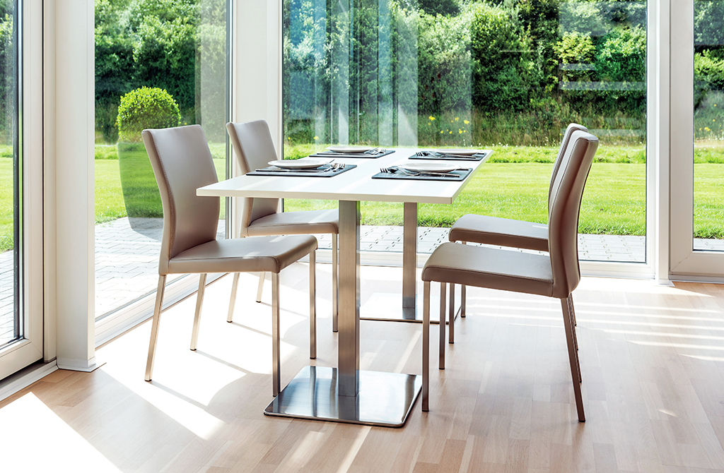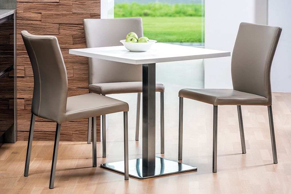 Met zijn moderne ontwerp is de Gliera E tafelzuil perfect voor het opzetten van een eettafel in de keuken of eethoek. Het totaalbeeld wordt stijlvol versterkt door de vierkante voetplaat in combinatie met edele oppervlakken. Het montagekruis is ontworpen voor eveneens vierkante tafelbladen met maximale afmetingen van 800 x 800 mm. Naast graniet is er een vrije keuze in materiaal en stijl. De ideale voorwaarden worden gecreëerd voor een individuele oplossing. Het vierkante kolomtafelframe is verkrijgbaar in zwart en met een roestvrijstalen afwerking die past bij persoonlijke ideeën.