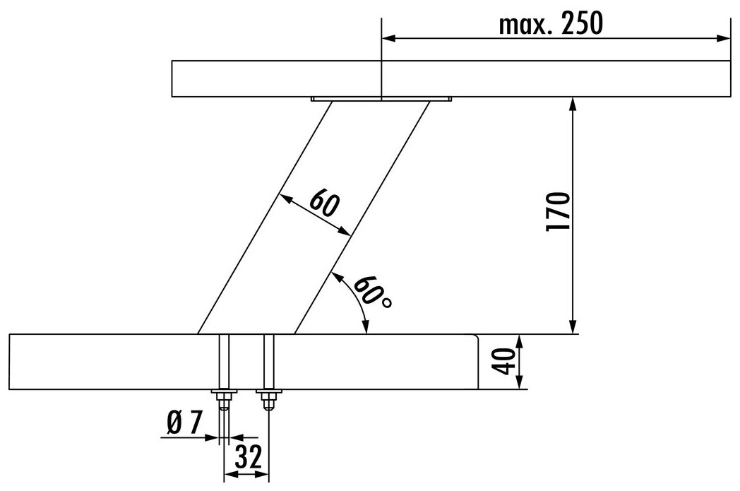 — max. belasting per paar van ca. 60 kg bij gelijkmatig verdeelde last, een max. afstand van de consoles van 900 mm en een max. uitsteken van de platen met 250 mm