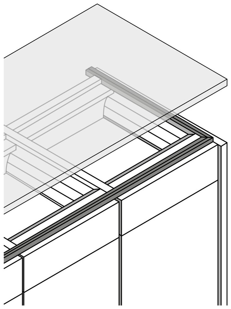 Het werkblad moet door de klant met 16 mm houten strips worden opgevoegd.