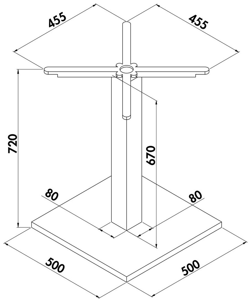 Met het vierkante Tablon® Liva E tafelframe kan de eethoek in de keuken naar eigen wens worden ingericht. Het kan worden gecombineerd met een vierkant of rond tafelblad. Hiervoor biedt de solide tafelvoet een robuust montagekruis van 455 x 455 mm. Het is verbonden met een elegante vierkante kolom van 670 mm hoog en 80 x 80 mm dik. Een solide voetplaat van 500 x 500 mm zorgt voor een veilige stand. Het vlakke basiselement bevat verstelbare poten zodat ongelijke vloeren eenvoudig kunnen worden gecompenseerd. Het kolomtafelonderstel is ontworpen voor tafelbladen tot 900 x 900 mm en kan tot 50 kg worden belast. Het wordt gekenmerkt door de hoge kwaliteit van afwerking en materialen. De tafelzuil is gemaakt van duurzaam metaal met een zwart oppervlak. Dit is ongevoelig en gemakkelijk schoon te maken. Het frame is eenvoudig te monteren met schroeven.
