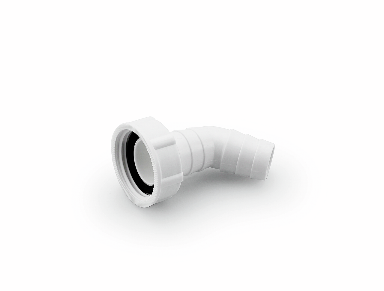 De hoogwaardige slangfitting wordt gebruikt om de afvalwaterslang van de vaatwasser of wasmachine aan te sluiten op de keukensifon. De slangaansluiting is geschikt voor kunststof slangen met een doorsnede van 20 tot 24 mm. Dankzij het conische ontwerp kan de apparaatslang stevig worden aangesloten. De witte aansluitschroefverbinding is ontworpen onder een hoek van 45°, waardoor de slang ruimtebesparend kan worden geleid. Voor een veilige bevestiging is een slangklem nodig, die apart verkrijgbaar is.