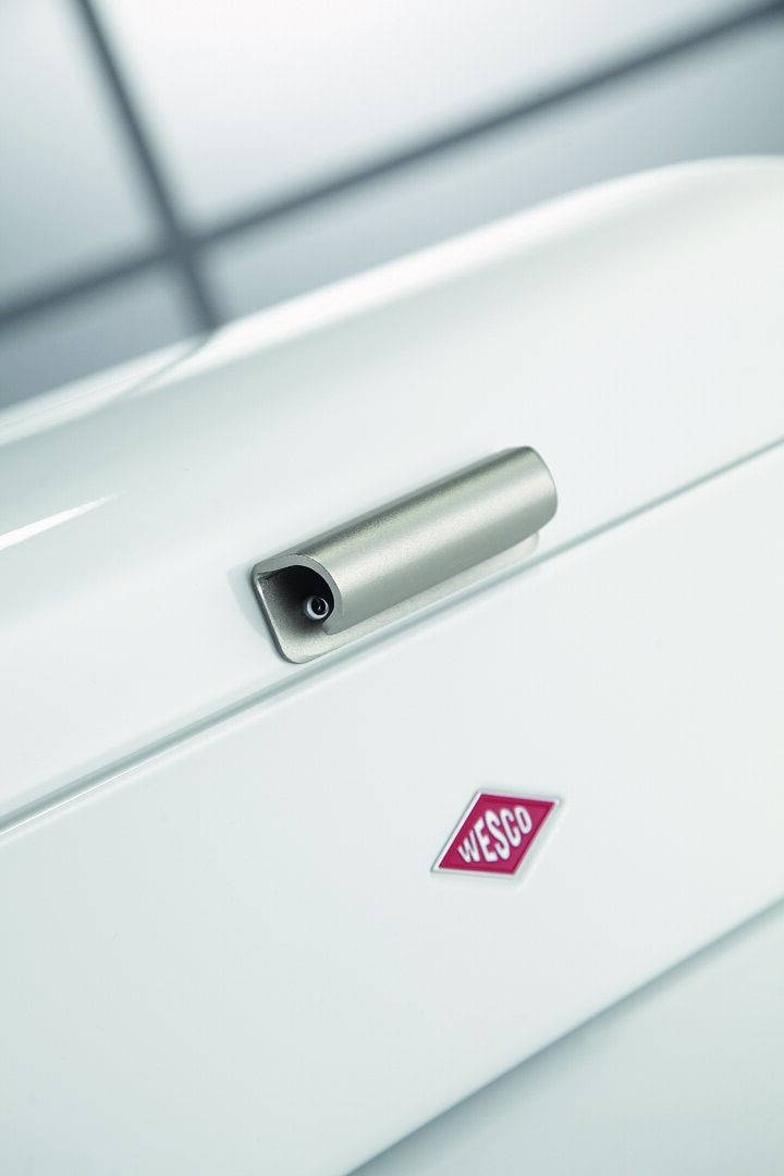 De grote brooddoos heeft ventilatiegaten aan de achterkant voor een optimale ventilatie van de inhoud. De metalen scharnieren waarmee het deksel vastzit en het handvat zijn gemaakt van stevig metaal en kunnen tegen een stootje. De Grandy® is natuurlijk verkrijgbaar in vele leuke Wesco kleuren.