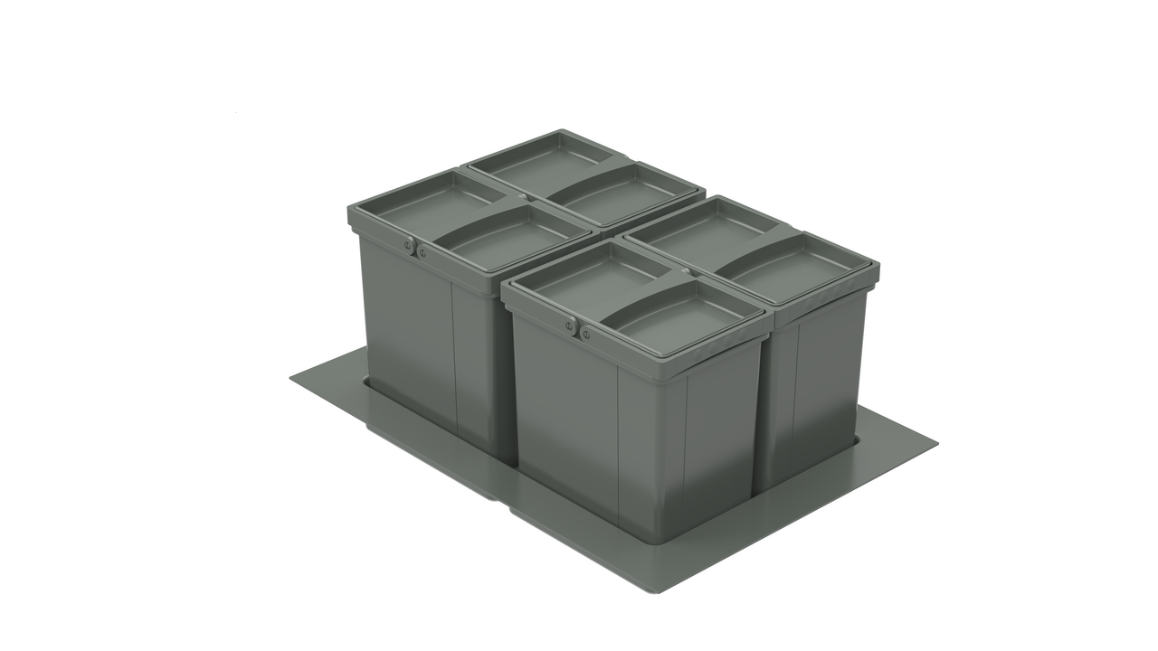 De afvalbak Pullboy Versa® 265 S/500-4 maakt een eenvoudige scheiding van afval en recyclebare materialen mogelijk en kan uit het zicht achter het keukenfront worden geplaatst. Omdat hij geschikt is voor montage op bestaande uittrekelementen, kan hij moeiteloos in de keukenkast worden bevestigd. Voor het sorteren van huishoudelijk afval in de keuken is het afvalscheidingssysteem uitgerust met vier binnenbakken. Met een totale inhoud van 28 liter biedt hij veel ruimte voor afval en recyclebare materialen. Voor een goede afsluiting is de inbouwafvalbak voorzien van een afzonderlijk deksel en kan hij optioneel worden geleverd met een totaaldeksel dat ruimtebesparend achter het bovenste front kan worden bevestigd. Om verschuiven en vocht op de vloer te voorkomen, wordt de afvalbak geleverd met een op maat te snijden bodemplaat.