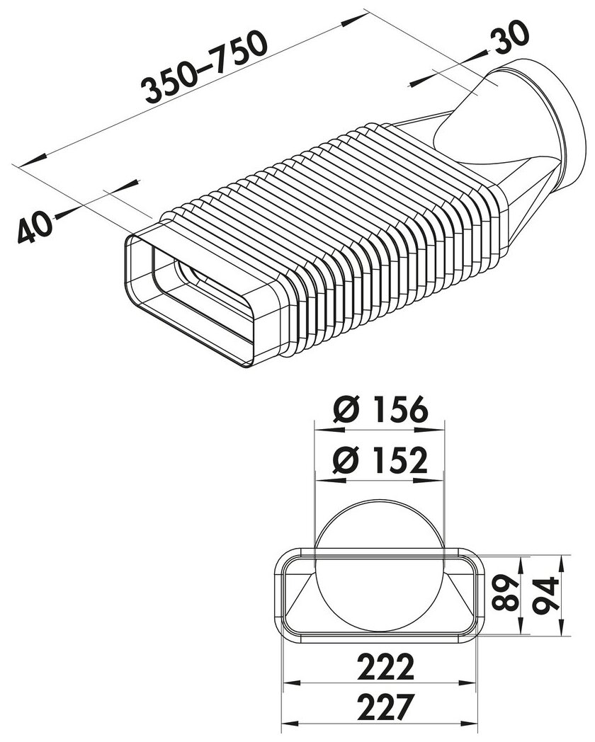 De COMPAIR® flow-buisbocht F-RBFLEX 2 Systeem 150 is een verbindingselement met adapter, dat door een hoge flexibiliteit gekenmerkt wordt. Bij de montage van het ventilatiekanaal van rond naar vierkant zijn draaiingen en ombuigingen tot 90° graden mogelijk. De mogelijke lengte van het koppelstuk ligt tussen 350 en 750 mm.