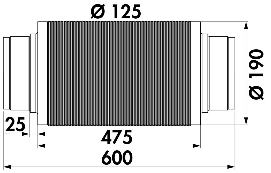 Geluiddemper 125, Ø 125 mm, L 475 mm