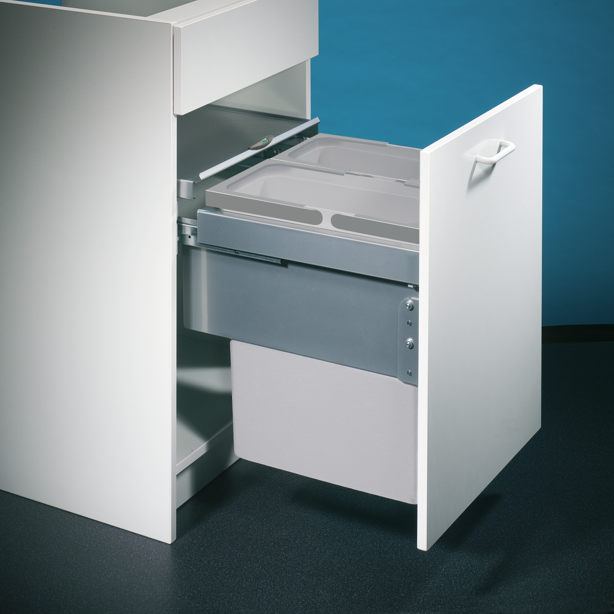 Het Cox® Base 460 S/450-2 afvalscheidingssysteem biedt een moderne oplossing voor het afvoeren van afval in de keuken. Het kan perfect worden geïntegreerd in het keukenblok en is geschikt voor kasten met frontuittrekelementen. Omdat de afvalverzamelaar gemakkelijk met één hand kan worden uitgetrokken, zorgt het voor een hoog bedieningscomfort. Het afvalscheidingssysteem heeft twee afvalbakken met elk een volume van 21 liter, waardoor het makkelijk is om bijvoorbeeld huishoudelijk afval en organisch afval te scheiden. Een uittrekbaar algemeen deksel maakt ook deel uit van de uitrusting en kan worden gebruikt als extra opslagoppervlak. Voor een soepel en stil intrekken is de inbouwafvalemmer voorzien van een soft pull-in en een dempingssysteem. Met het quick&easy-montageframe kan hij eenvoudig aan de wandunit worden bevestigd. Optionele accessoires zoals de Cox® Base enkele afvalbak zijn verkrijgbaar.