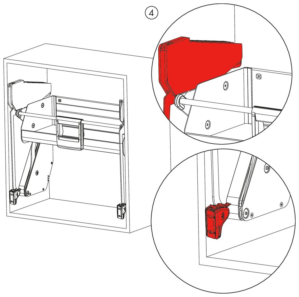 Het innovatieve iMove-Set Double Tray-liftbeslag voor keukenbovenkasten maakt het eenvoudig om het bovenste kastniveau te bereiken. Dankzij het geavanceerde uittreksysteem is het permanente gebruik van een trapladder niet langer nodig. Het kan met slechts één hand worden verplaatst en transporteert het hele schapniveau inclusief inhoud met een elegante zwaai naar beneden en voor de kast. Dankzij de softstop daalt het systeem zachtjes zodat er geen schok ontstaat. Optillen is net zo comfortabel met het geïntegreerde soft-close mechanisme. De lift heeft twee legplanken boven elkaar. Het totale draagvermogen is 8 kg. De set is ontworpen voor bovenkasten met een rompbreedte van 600 mm. Hij is ook geschikt voor inbouw achteraf. Het kastbeslag wordt gekenmerkt door zijn intelligente technologie, inclusief vingerknelbeveiliging. Afstellen is niet nodig. De lift-etagère is bedoeld voor schroefbevestiging in de zijpanelen, die 16 of 19 mm dik kunnen zijn.