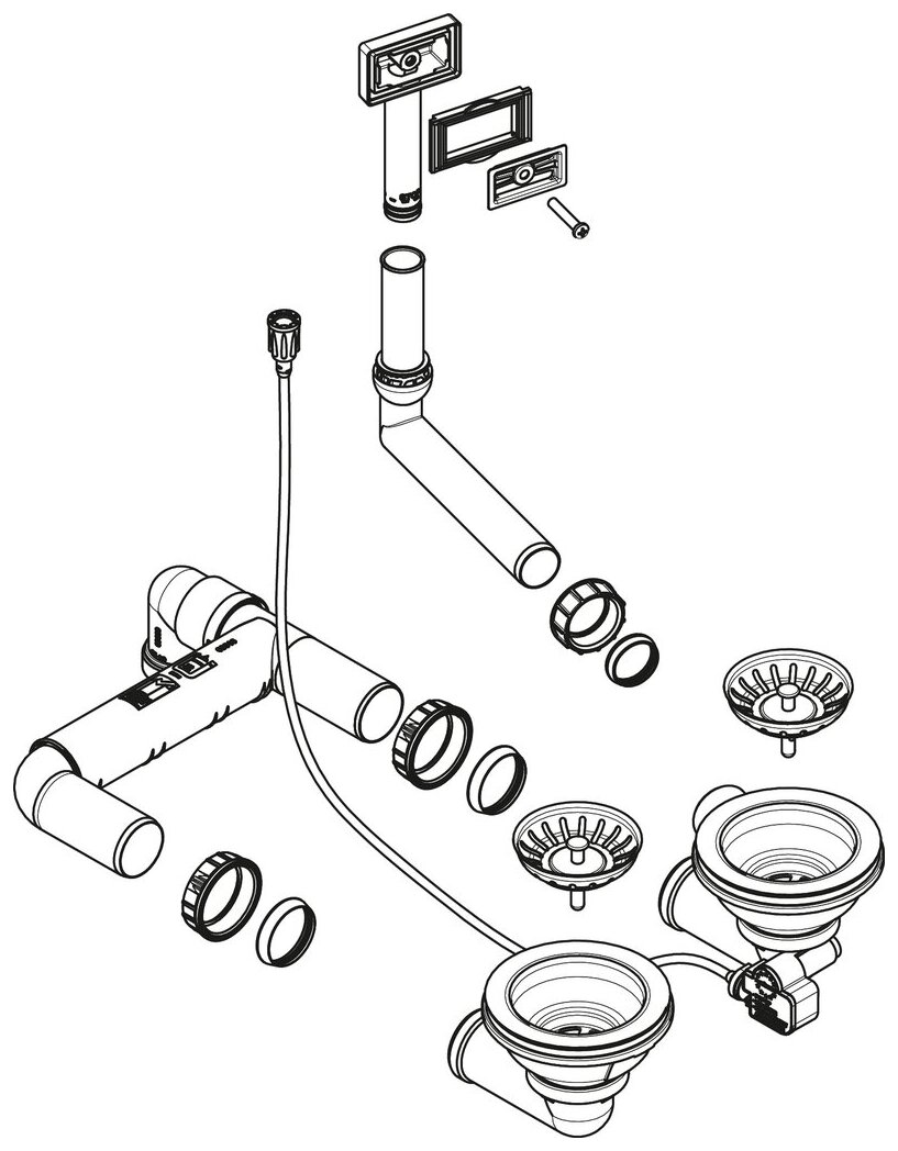 Excentrische set met drukknop, 3½" zeefkorfventiel, voor dubbel bekken, roestvrij staal