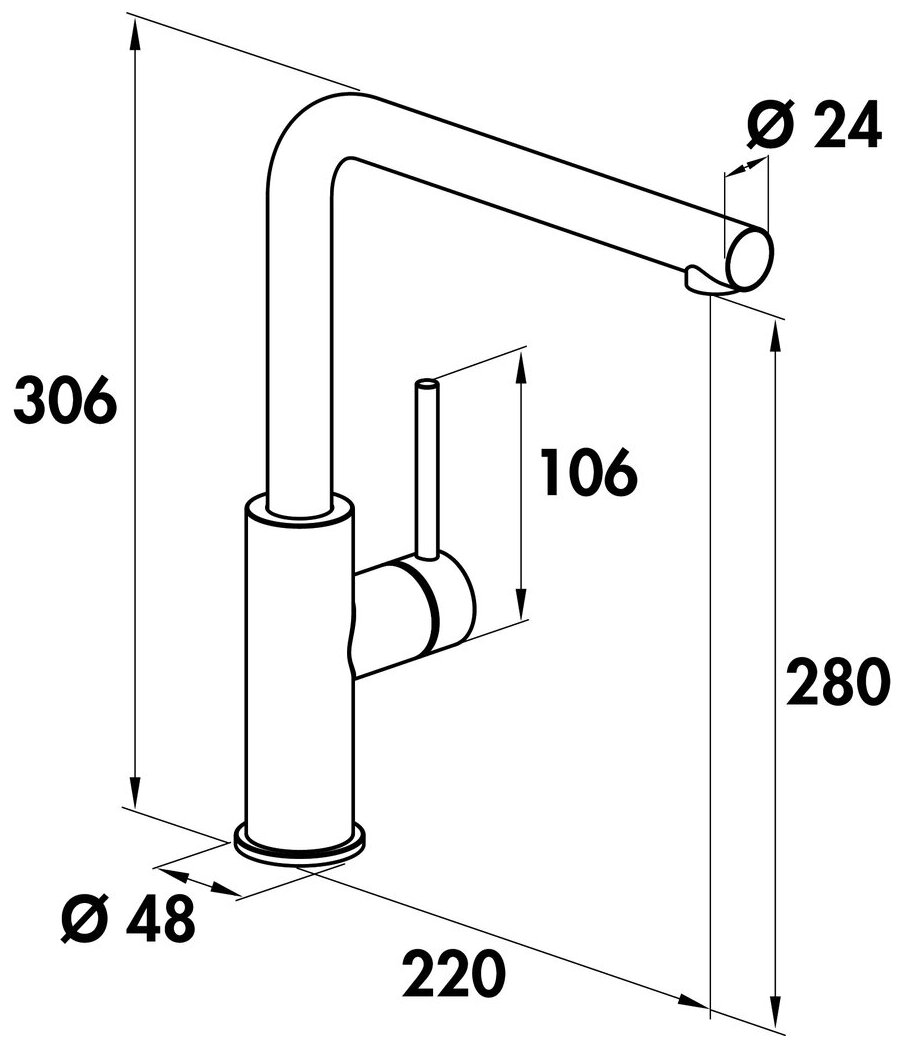 Eengreepsmengkraan. Met zwenkbare gietuitloop, zijdelingse hendel en keramisch binnenwerk.