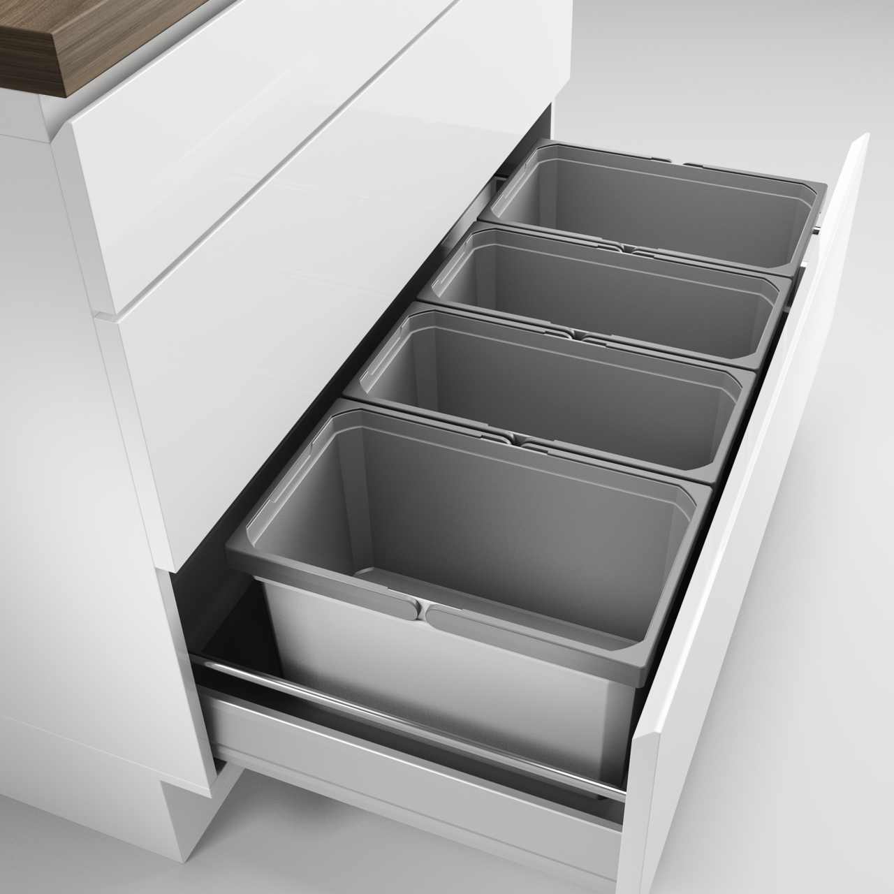 Voor montage op voorhanden uittreksystemen. Met antislip-inlegmat en compleet deksel vaststaand.