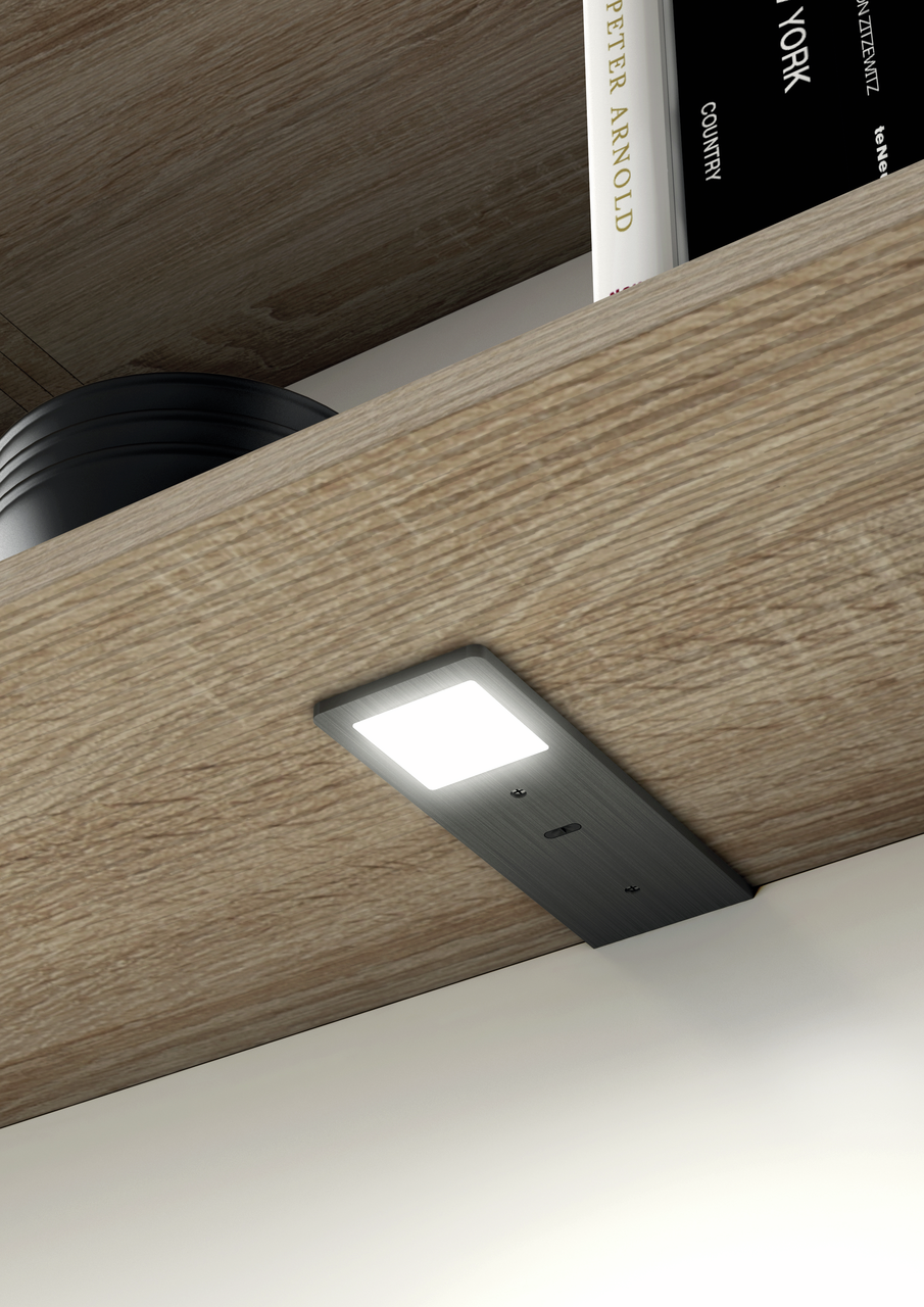 DeLumica® onderbouwlamp AstraLED SE zorgt voor een individuele lichtstemming in de keuken. Hij kan aan de onderkant van hangkasten worden gemonteerd en verspreidt licht als werk- en indirecte ruimteverlichting. Daarbij biedt hij een optimale verlichting zonder zichtbare LED-punten. De rechthoekige aluminium behuizing in matzwart valt op door zijn ultradunne afmetingen van 190 x 70 mm bij een hoogte van slechts 5 mm. De onderbouwlamp is verkrijgbaar in de lichtkleuren warm wit met 3000 Kelvin en neutraal wit met 3900 Kelvin. Een enkele lamp is verkrijgbaar zonder of met LED-touchschakelaar en dimmer. Hiermee kan de helderheid traploos worden geregeld. De onderbouwlamp heeft bovendien een geheugenfunctie, waarmee de laatst gekozen instelling wordt opgeslagen. Het verbruik bedraagt 5 watt en 24 volt. De helderheid komt overeen met 65 lumen per watt. De uitrusting omvat een 150 mm lange toevoerleiding en een verbindingsleiding met ministecksysteem met een lengte van 2000 mm. Het LED-product is naar keuze verkrijgbaar als afzonderlijke lamp of in verschillende sets.