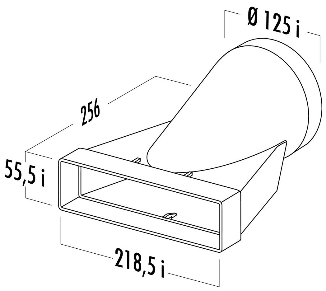Het COMPAIR® top T-EST 125 eindstuk dient voor de verbinding van een breed kanaal met de afmeting 218 x 55 mm met een rond kanaal met diameter 125 mm. Het is geschikt voor de aansluiting op ronde aansluittuiten van lamellen-, motorkap- of muurdozen. Het ventilatiehulpstuk kan ook worden gebruikt als een eerste element voor een directe verbinding met ronde aansluittuiten met een doorsnede van 125 mm. Het overgangsstuk met recht contactoppervlak is gemaakt van duurzaam materiaal.