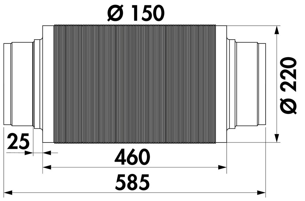 Geluiddemper 150, Ø 150 mm, L 460 mm