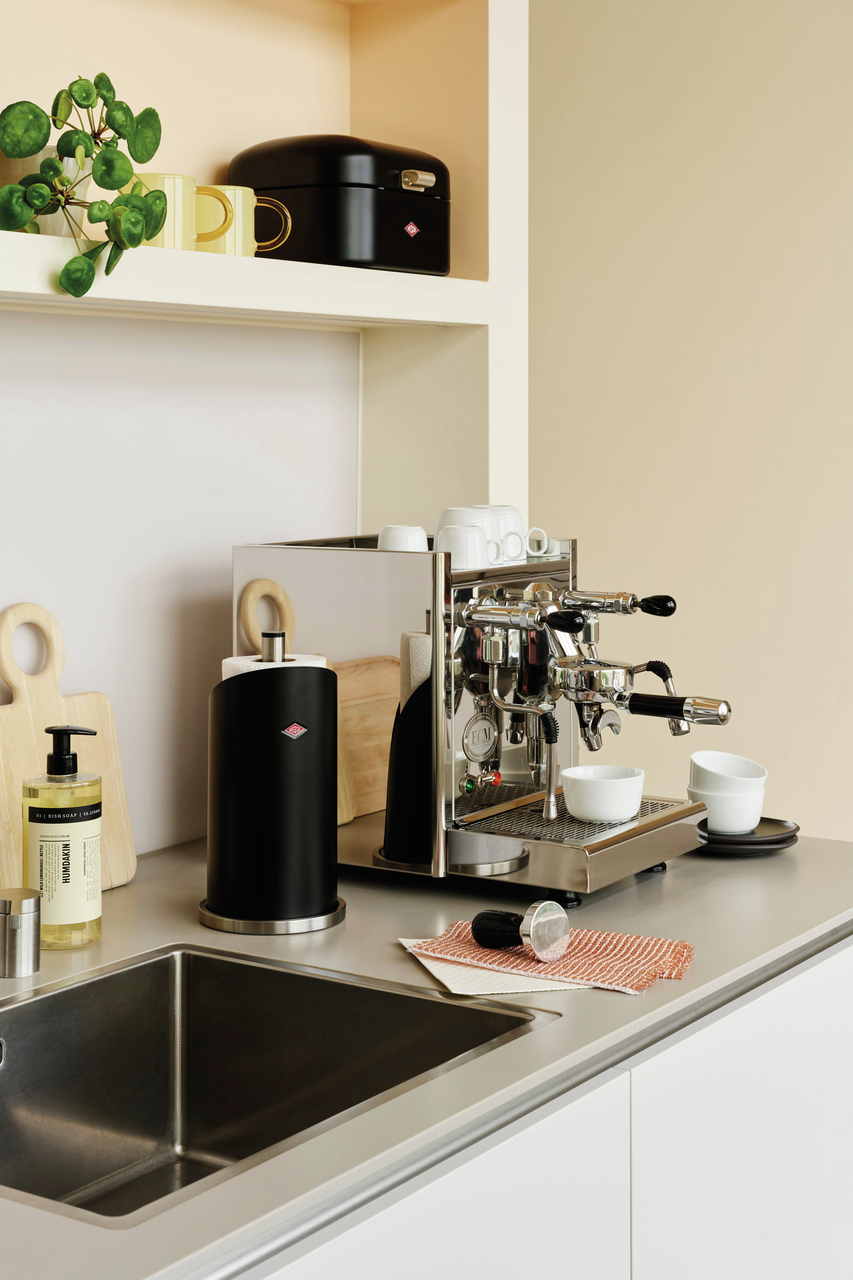 Heeft je keukenrol nog geen vaste plek in je keuken? Dan is het hoog tijd voor deze praktische rolhouder in de typische Wesco materiaalmix van roestvrij staal en gekleurd gelakt plaatstaal.