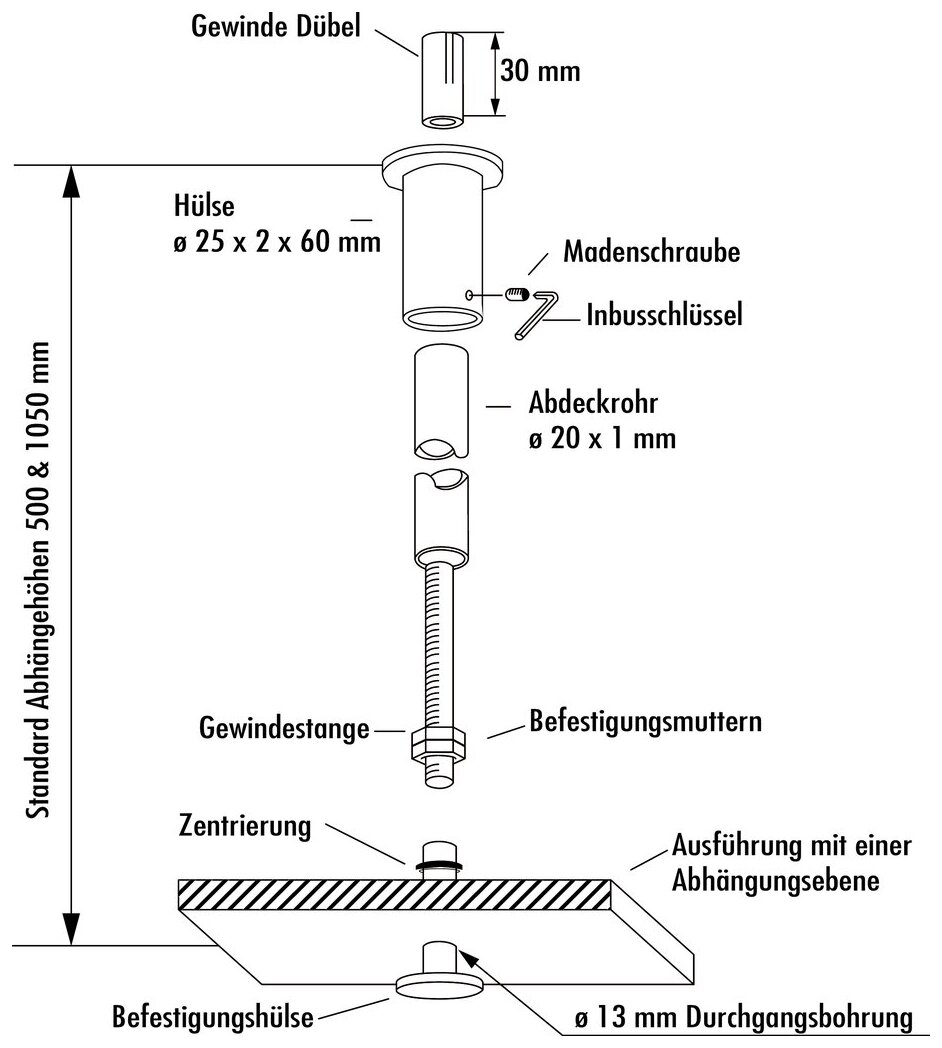— incl. bevestigingsset voor beton- en stenen plafonds