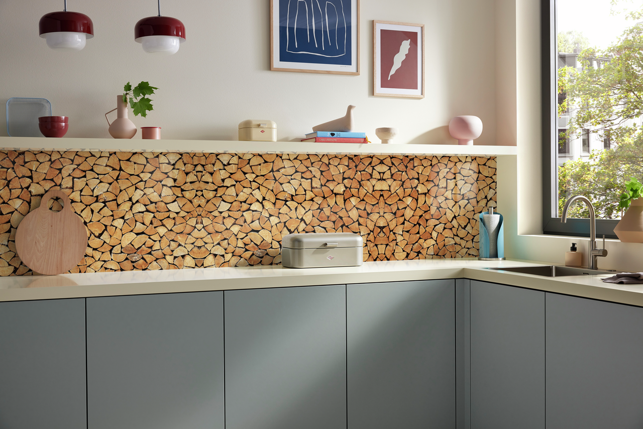 De PICit® 101 keuken spatwand in houtlook creëert een warme sfeer in de nis dankzij het rustige kleurenschema. Gedrukt in een fotorealistisch digitaal proces, maakt het indruk met zijn uitstekende beeldkwaliteit. Om de kleurechtheid duurzaam te behouden, wordt aan het einde een laag UV-printbeschermend laminaat aangebracht. De gewenste nismaat kan in de Naber nisachterwandconfigurator vrij worden gedefinieerd tot een maximale afmeting van 3050 mm in de breedte en 700 mm in de lengte. Speciale maten zijn op aanvraag mogelijk. Bovendien zijn er keuzemogelijkheden met betrekking tot het materiaal, het oppervlak en de plaatdikte. De uitgebreide PICit® motievenreeks en de BASICit® reeks met RAL-kleuren in effen kleuren bieden nog meer creatieve ontwerpmogelijkheden. Klantenwensen met individuele en persoonlijke motieven worden gerealiseerd via MySCENEit®-Unikate.