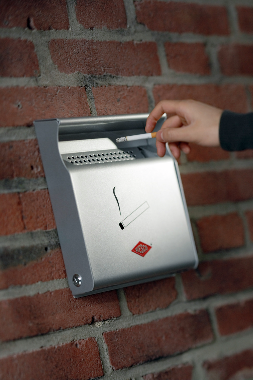 Wandasbak van hoogwaardig gelakt plaatstaal in brievenbusformaat voor wandmontage. De wandasbak kan aan de zijkant worden vergrendeld met een driehoekige sleutel, waardoor hij bijzonder vandalismebestendig is. Volledig gemonteerd. Geschikt voor buitengebruik.