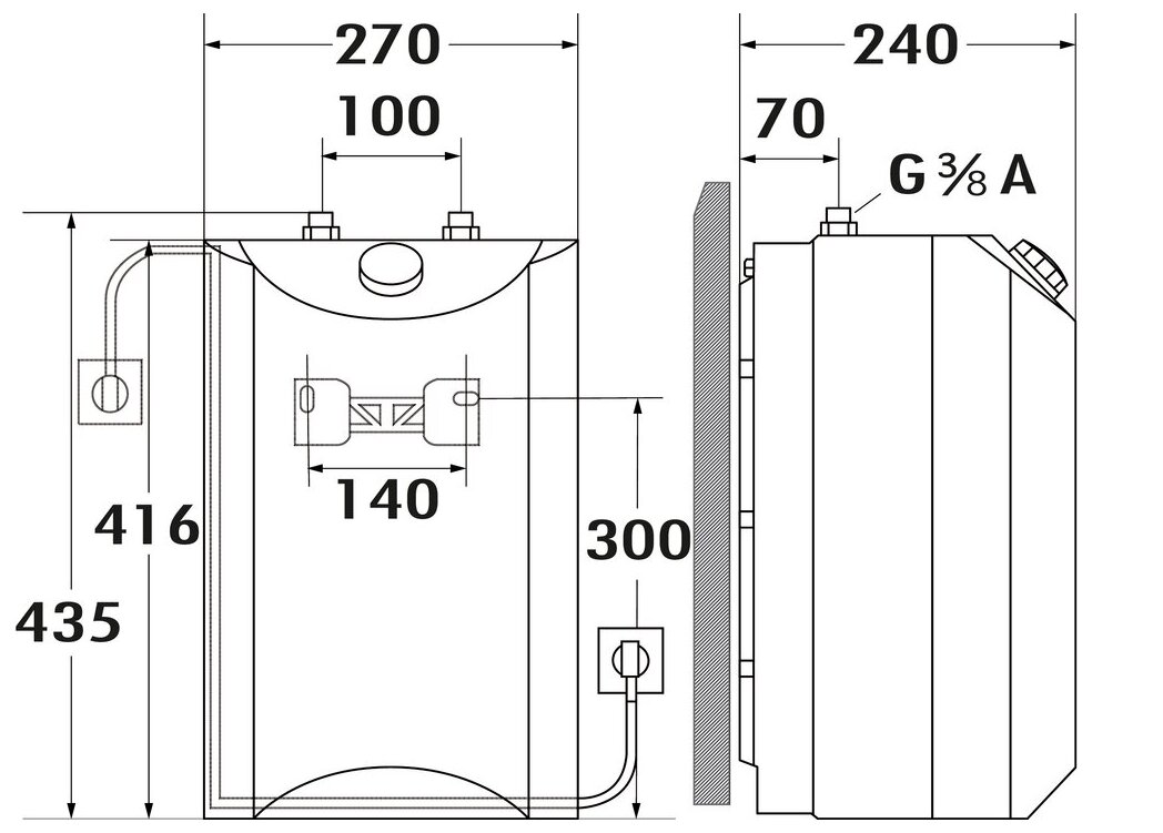 — toestelafmetingen (H x B x D) 435 x 270 x 240 mm