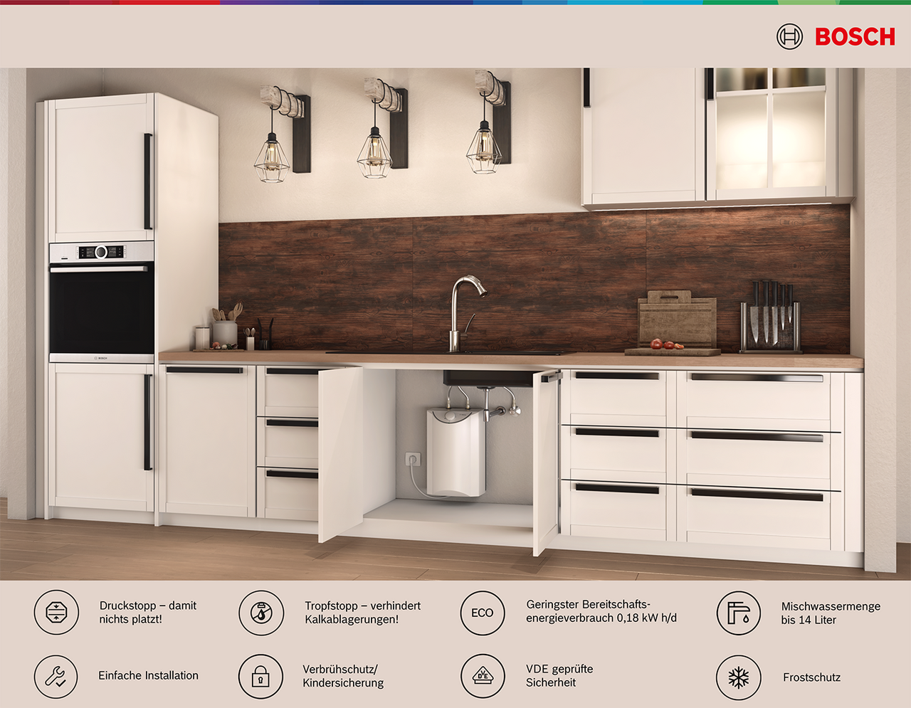 Druppelstop verhindert het druppelen bij het verwarmen, bespaart water en vermindert kalkafzettingen. De drukstop toont de verkalking aan en herkent de verkeerde wateraansluiting vanaf 0,25 MPa (2,5 bar).