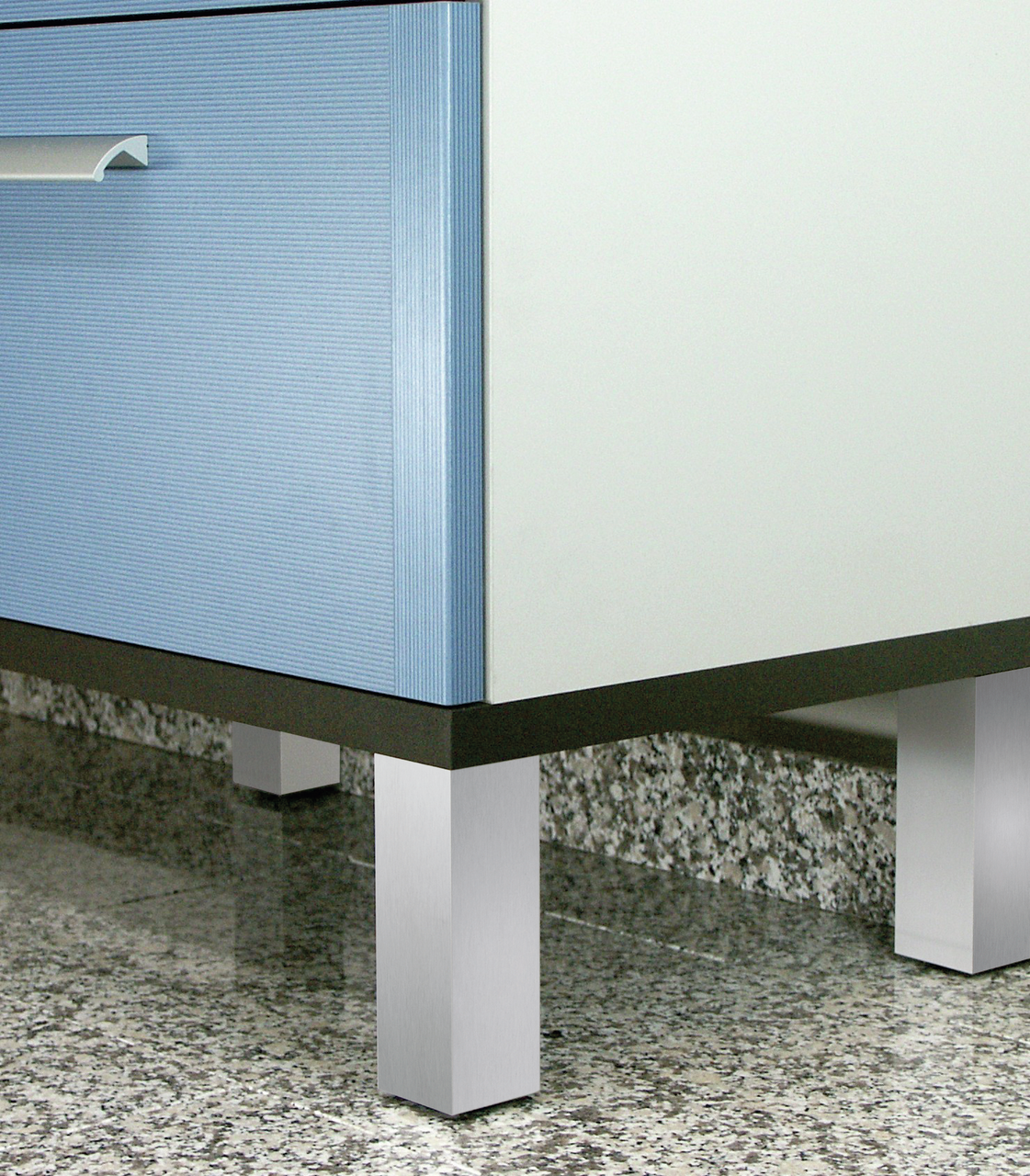 De Kreta-bodem is een elegant alternatief voor aluminium frames. Het kan flexibel en op verschillende manieren worden gebruikt. Dankzij het tijdloze vierkante ontwerp past hij harmonieus in verschillende inrichtingsconcepten. Als meubelonderstel voor keukenonderkasten of voor de commode in de badkamer, het zorgt voor bodemvrijheid en een ergonomische hoogte. De vierkante buis heeft een dikte van 50 x 50 mm en is voorzien van een praktische hoogteverstelling van 10 mm. Het gebruikte materiaal is robuust aluminium, dat gemakkelijk te hanteren is dankzij het lichte gewicht. Dit resulteert in een hoog draagvermogen van 150 kg. Je kunt kiezen uit verschillende hoogtes en moderne oppervlakteafwerkingen. De verstelbare voet is ontworpen voor stabiele schroefmontage. Hiervoor is een schuine montageplaat voorzien.