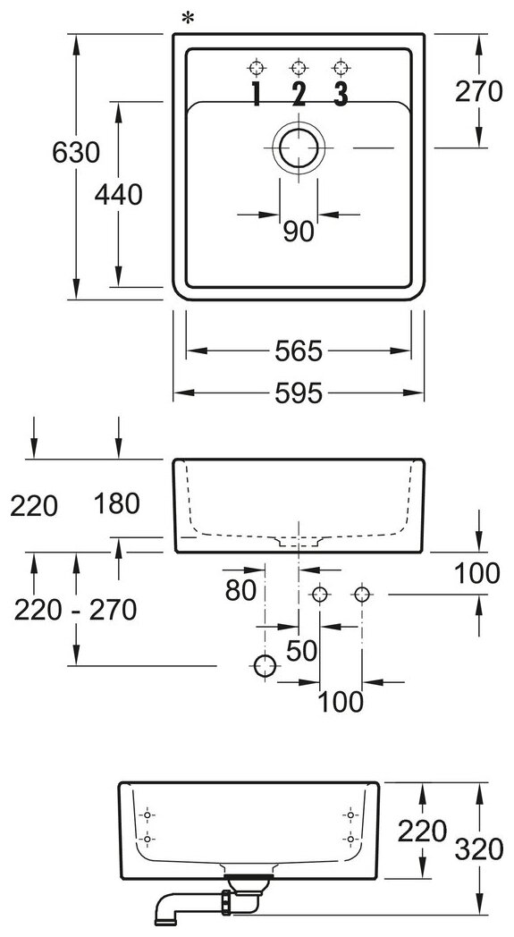 Gootsteen, keramiek. Enkel bekken. 3½" zeefkorfventiel, draaiwaste-garnituur, verchroomd, bevestigingsset voor montage op een onderkast.