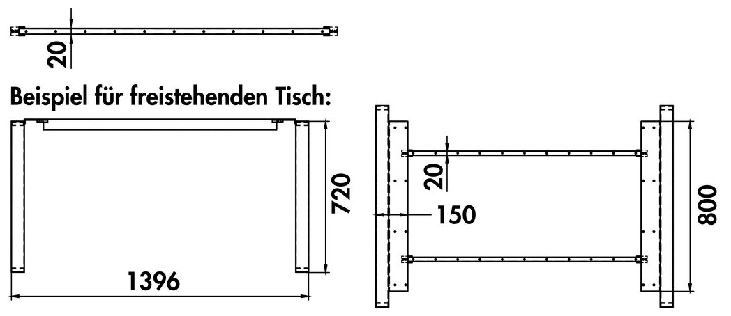 voor totale tafellengte 1596 mm (incl. 2 sledes)