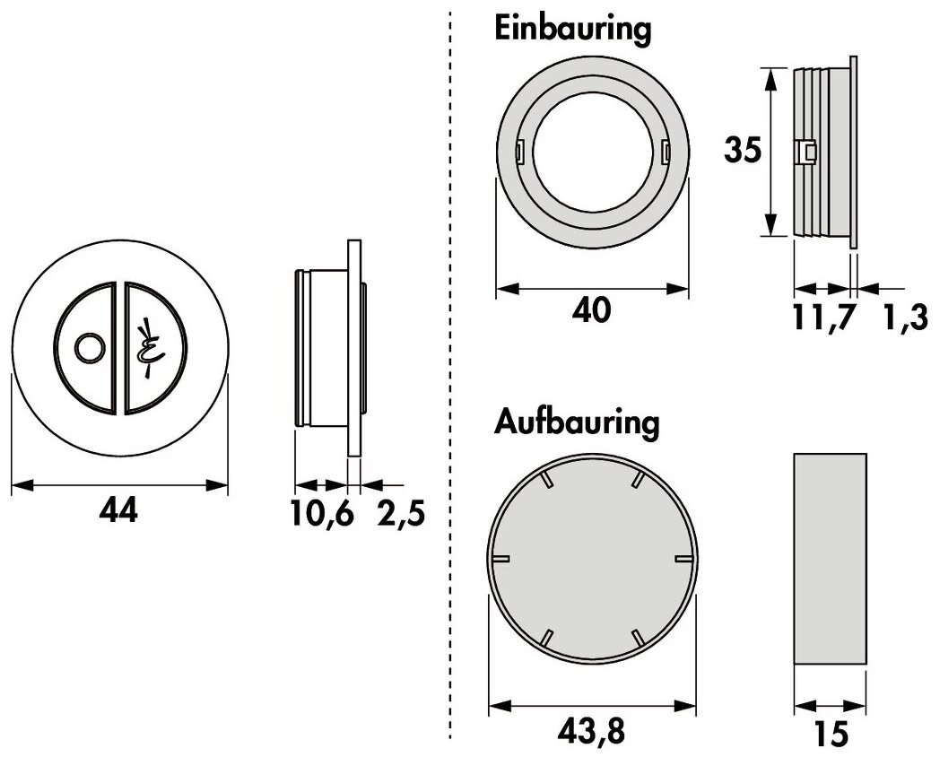 — als contactdooselement (driepolige stopcontact), voor de inbouw of als handmatige afstandsbediening bruikbaar
